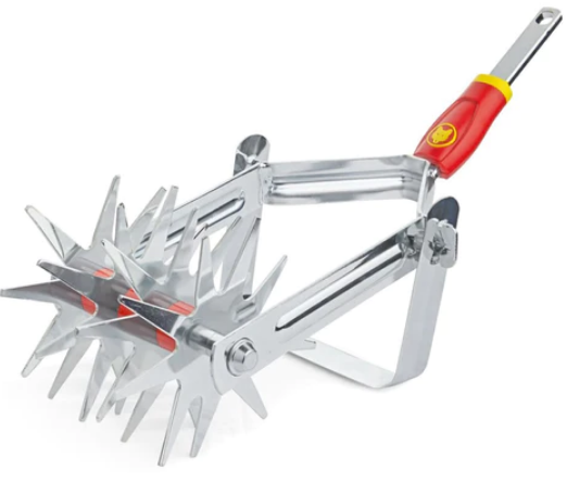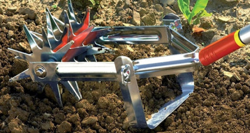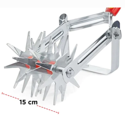 This Soil Miller crumbles heavy soil into a fine tilth, removes weeds and prepares the ground for planting and sowing seeds. It also helps mix peat, manure and fertiliser into the soil with minimal effort. The rear blade provides you with greater control by keeping the tool at a constant depth while you work. The roller motion allows you to get the job done quickly, making it ideal for use in large areas.